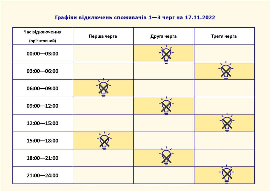 По распоряжению НЭК "Укрэнерго" сегодня, 17 ноября, в Запорожье и Запорожском районе будет продолжено действие графиков почасовых отключений электроэнергии до стабилизации состояния единой энергосистемы страны.