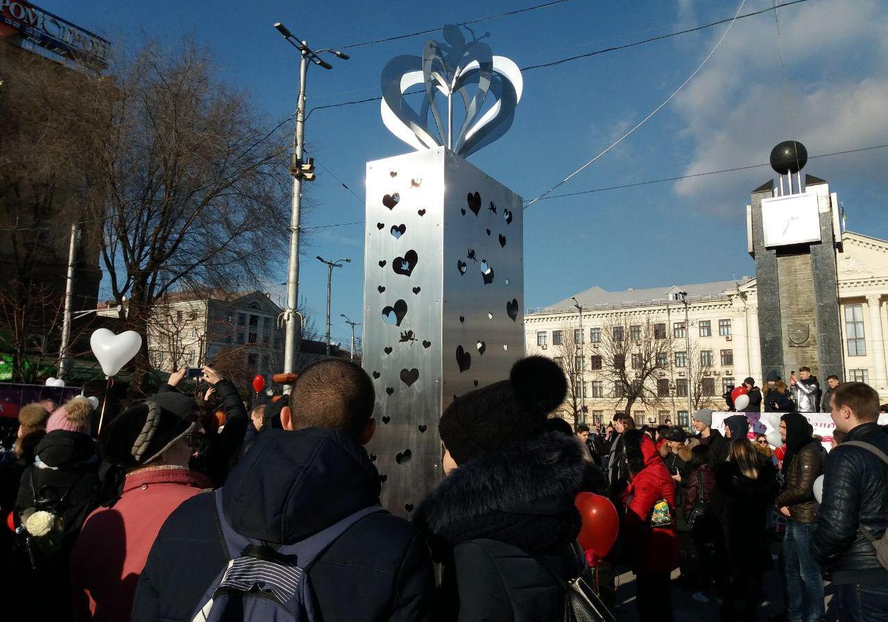 В центре Запорожья открыли новую скульптуру для возлюбленных.