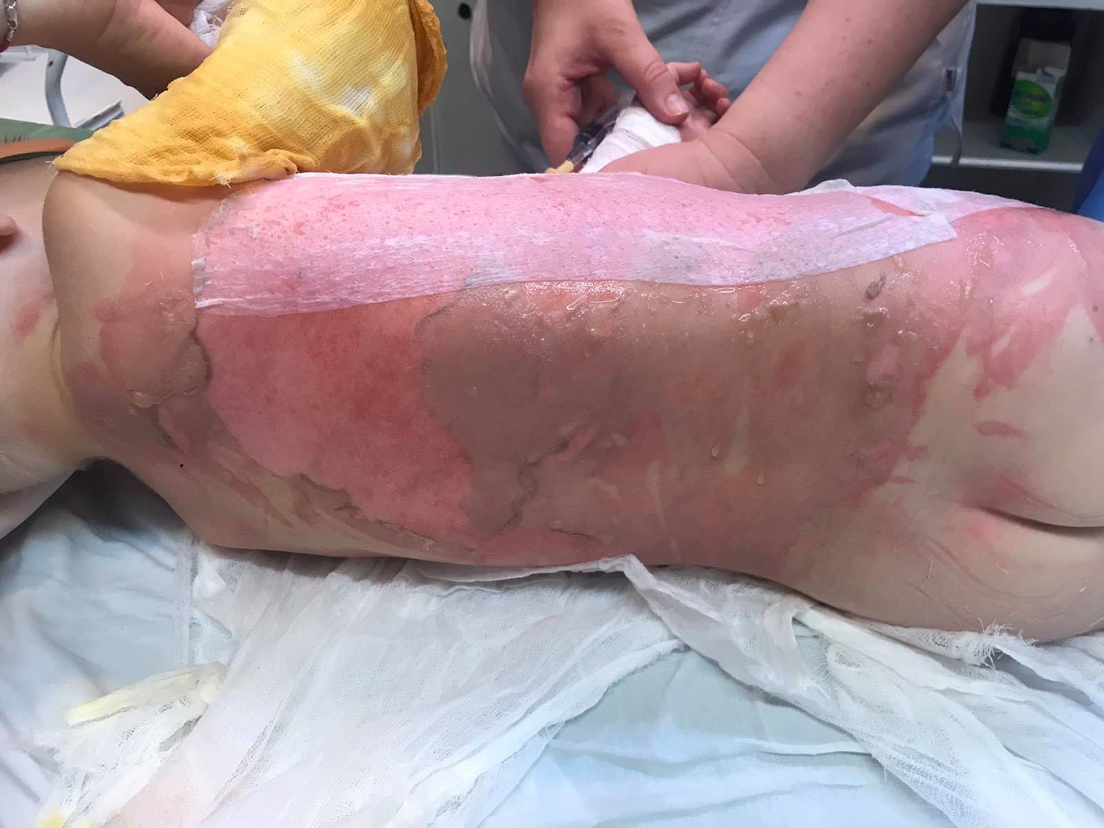 В запорожскую городскую больницу доставили малыша, у которого 35% ожогов тела. Ребенку нужна срочная помощь.