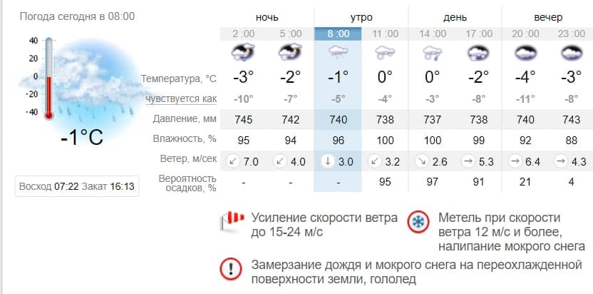 По прогнозу синоптиков, с самого утра в городе ожидается мелкий дождь, который сменит снег. Ближе к обеду в городе будет идти уже мокрый снег и все это при температуре воздуха в 0 градусов. Затем к вечеру температура снизится до -2 и уже пойдет снег, который быстро прекратиться. При этом температура воздуха будет ощущаться как -8, потому следует одеваться тепло.