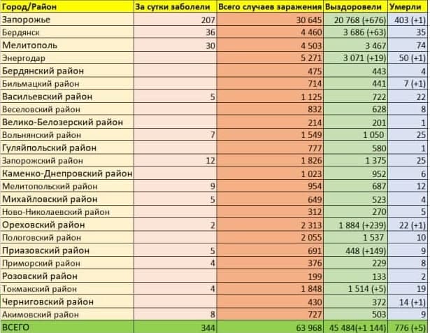 Так, ситуация с распространением болезни по Запорожскому региону выглядит следующим образом: