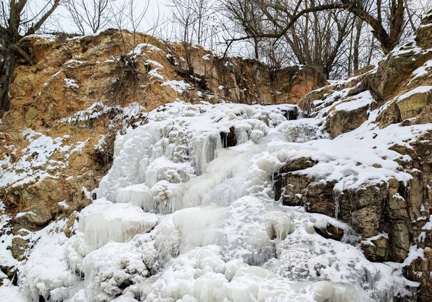Из-за низкой температуры и арктического циклона, который был в Запорожской области, вода на скалистых склонах реки Вольнянка, превратилась в лед. Замерзший водопад выглядит очень живописно и необычно. Увидеть такую картину можно не часто, учитывая наши теплые зимы.