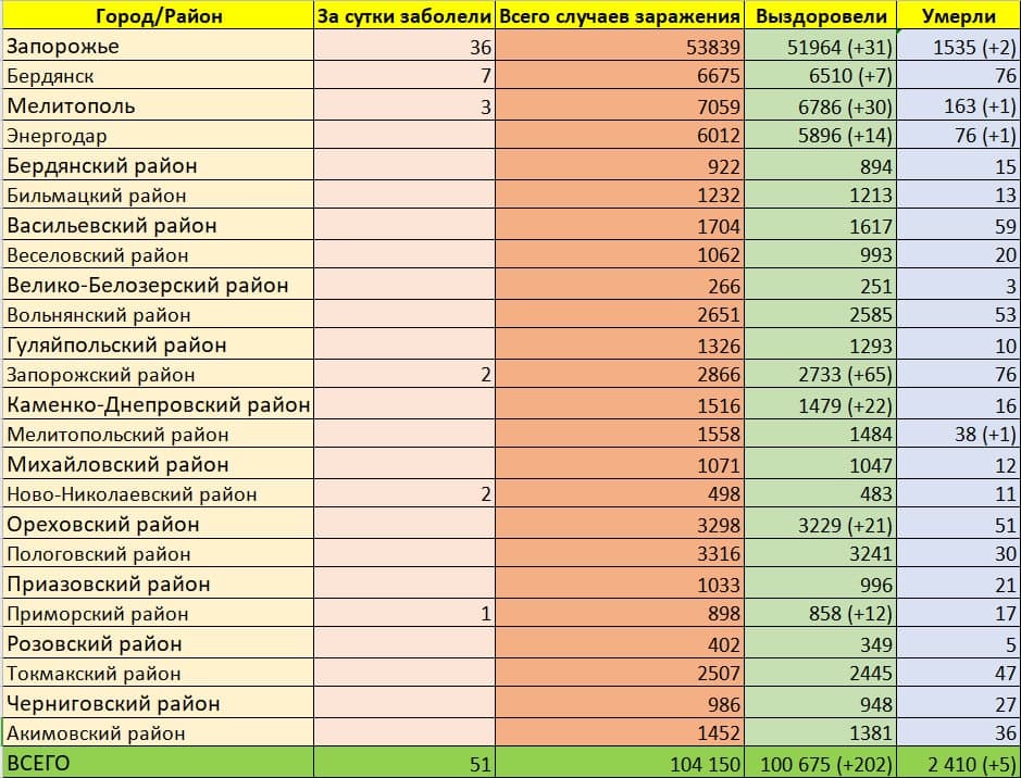 Так, ситуация с распространением болезни по Запорожскому региону выглядит следующим образом:
