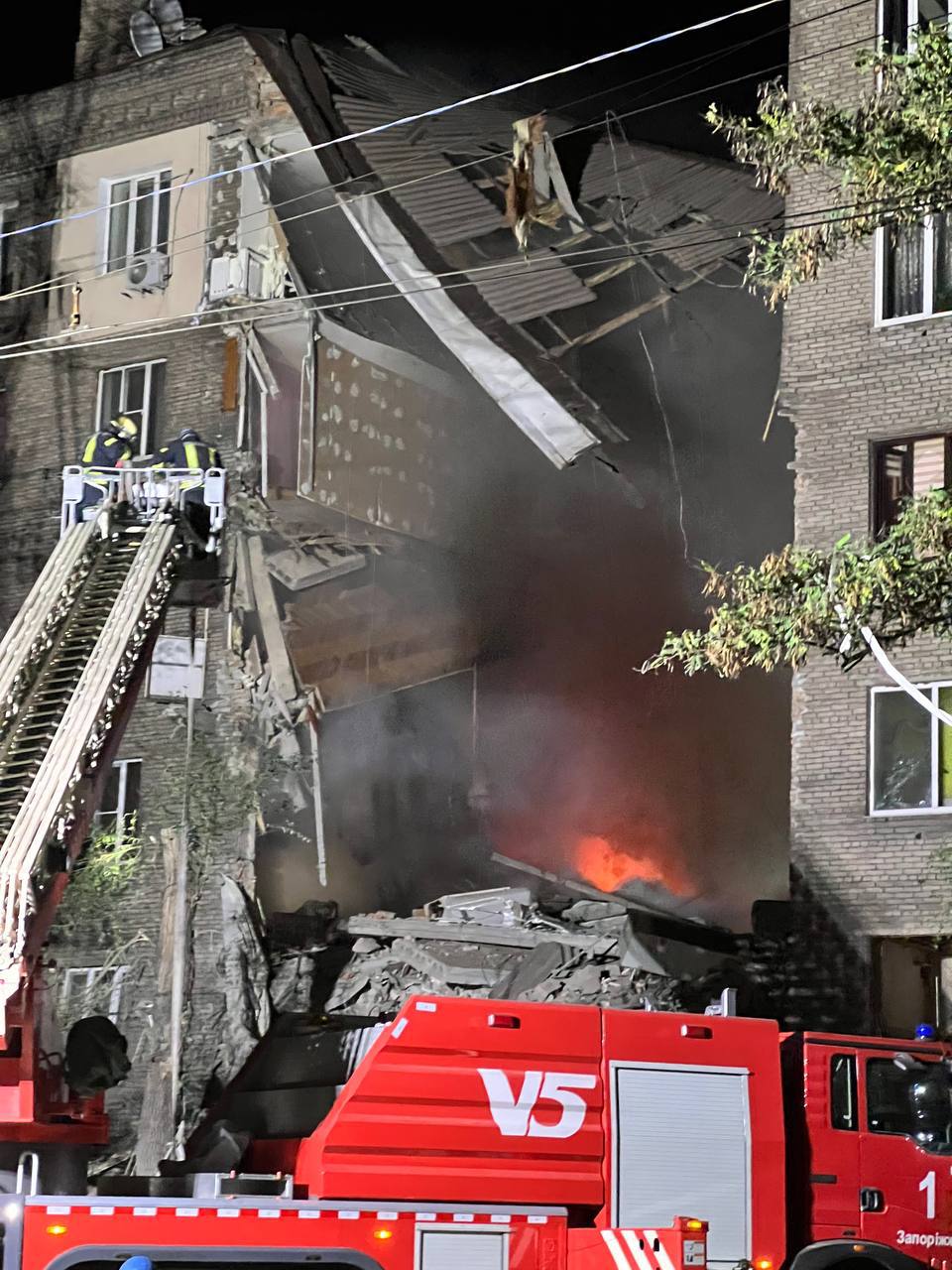 По предварительной информации главы Запорожской ОВА Александра Старуха, в результате ракетной атаки в центре Запорожья снова разрушен многоэтажный жилой дом. Есть пострадавшие.