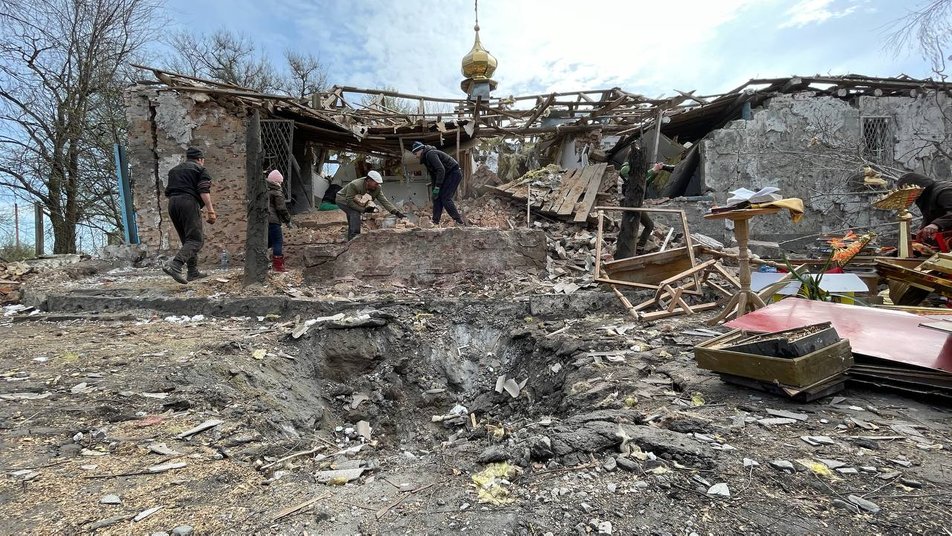 Еще одна ракета попала возле местной церкви. Взрывной волной повреждены здания и дома вокруг.