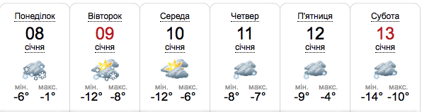 Остальные дни на следующей неделе также будут морозными. В субботу ночью, 11 января, обещают даже -14. Осадки в виде снега прогнозируют на каждый день.