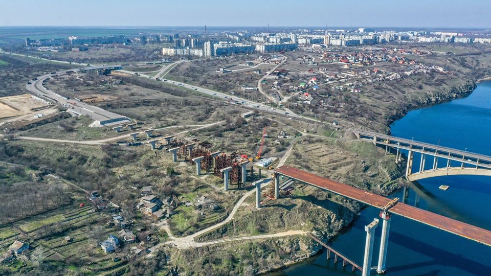Несмотря на карантин в Запорожье продолжают строиться знаменитые мосты через речку Днепр. В сети появились фото, которые позволяют лицезреть этот процесс с огромной высоты.