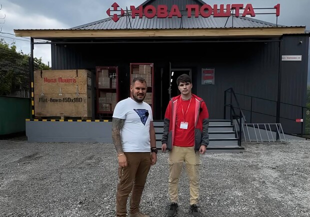 Отделение в Камышевахе открыли партнеры Новой почты — отец и сын Николай и Кирилл Грабки. Именно они обеспечили работу логистического пункта в сложных условиях прифронтовой территории.