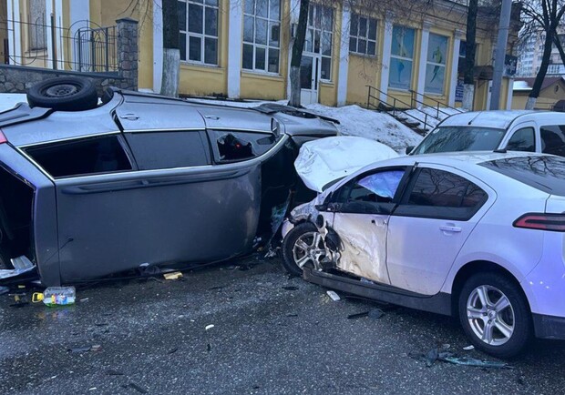 Под Харьковом автомобиль из-за непогоды забросило на крышу другого авто (фото)