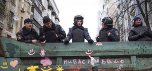 "Мы вас любим": активистки Майдана разрисовали грузовики с бойцами внутренних войск