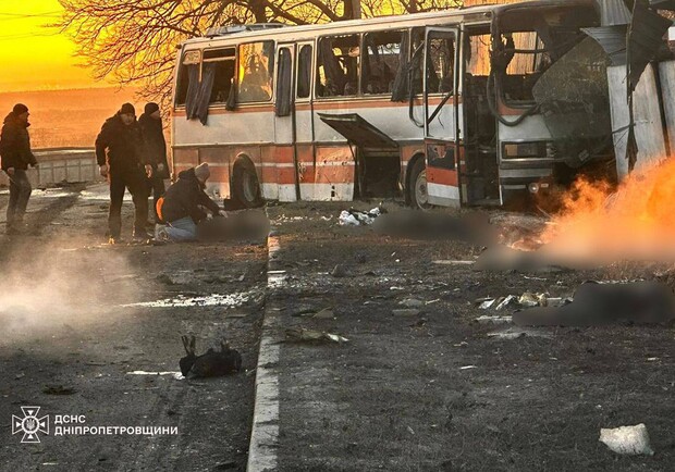 Удар по автобусу с шахтерами ДТЭК в Терновке (ВИДЕО 18+)