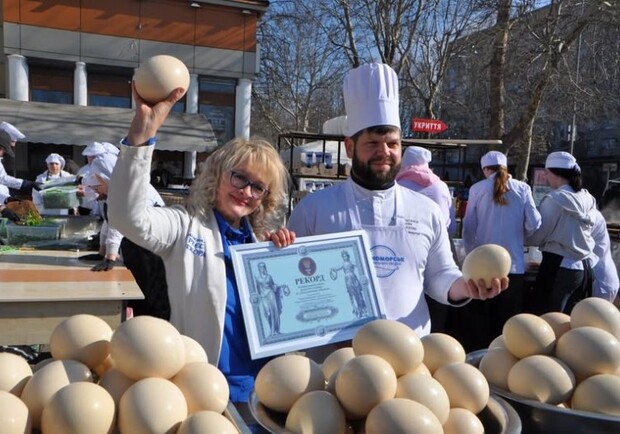 В Одесской области сварили 2 тонны зеленого борща из 100 страусиных яиц и установили национальный рекорд