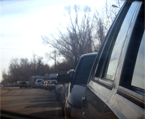 Уже второй день запорожцы сталкиваются с довольно-таки большим затором на въезде на второй мост Преображенского – если ехать с центра города на Бабурку.