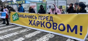 "Зе, вибачся перед Харковом": біля будівлі ХОДА проходить кілька мітингів