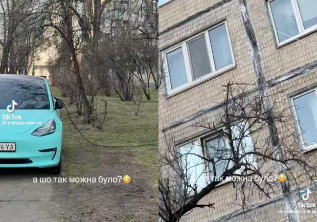 Подія трапилася в одному з житлових комплексів Києва. На відео видно, як з вікна квартири на п’ятому поверсі звисає подовжувач. Його під’єднано до електрокара Tesla, припаркованого біля будинку. Кадри швидко стали вірусними, викликавши бурхливу реакцію користувачів соцмереж.